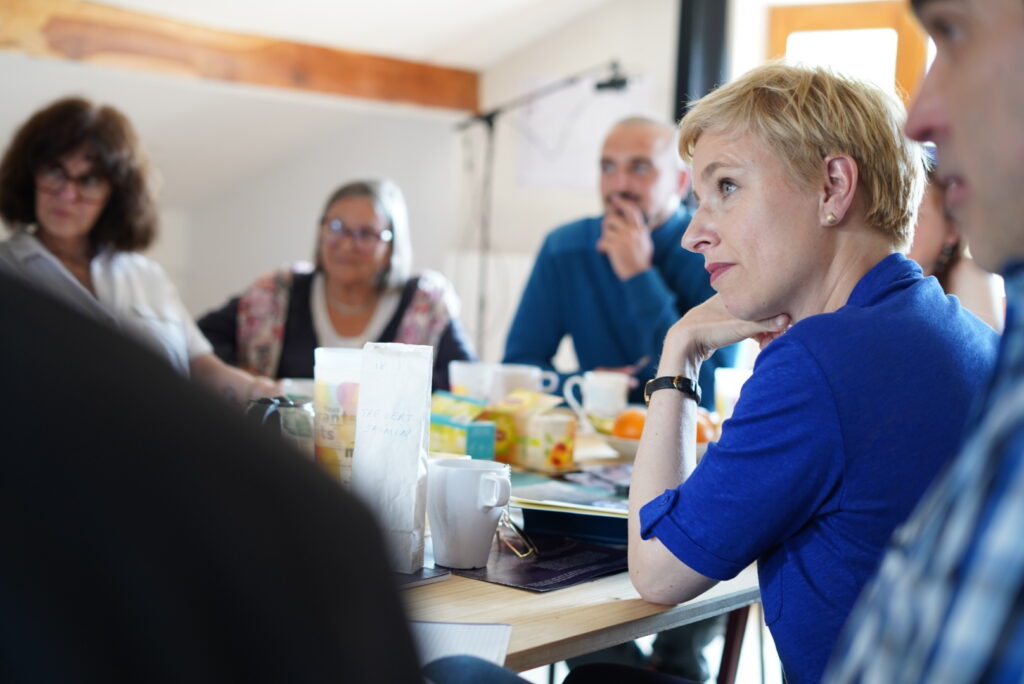 Premier temps d’échange : dans cette zone frontalière, comment accueillir les migrants alors que l’État restreint et violente les droits, les personnes ? L’énergie des militant·es et salarié·es associatifs qui œuvrent ici, à Terrasse Solidaire, pour l’accueil des exilé·es est admirable. Ce ne sont pas les montagnes qui sont dangereuses mais la surveillance brutale, le manque de places d’hébergement, le non-respect des droits fondamentaux. Dans un contexte idéologique et légal toujours plus dépris d’humanité, il nous faut reprendre la main. La crise est celle de l’accueil… mais aussi celle des moyens pour assurer la dignité de la France dans l’accueil des migrants.