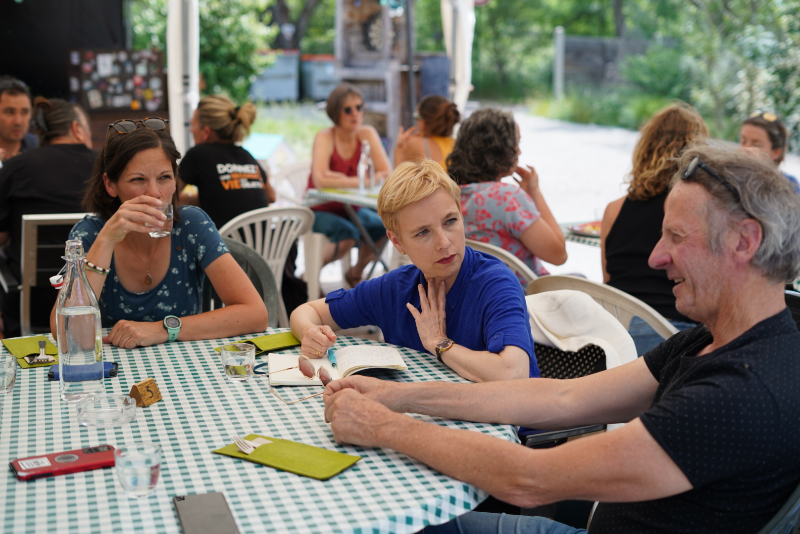 Vraiment, je remercie Laurent Eyraud-Chaume, pour son engagement et son amitié, et tous les militant·es de L’Après qui m’ont chaleureusement accueillie – avec une mention spéciale pour Gérard qui m’a concocté un super repas sans gluten (eh oui, j’y suis intolérante, personne n’est parfait…) en panier-repas pour mon retour dans le train !