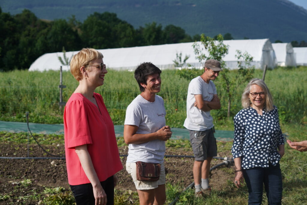 Une nuit plus tard, me voici dans la Ferme de Sarriette et Roquette (paysans-épiciers), avec des représentant·es de la Confédération paysanne, de collectifs pour la sécurité sociale de l’alimentation ou mobilisés contre l’agrivoltaïsme. Au menu : spécificités de l’agriculture en montagne, enjeux de l’élevage, relocalisation de l’économie, agressivité d’entreprises privées pour installer des panneaux voltaïques détruisant des terres et des forêts – « des panneaux sur les toits, pas dans les bois »… Encore très nourrissant !