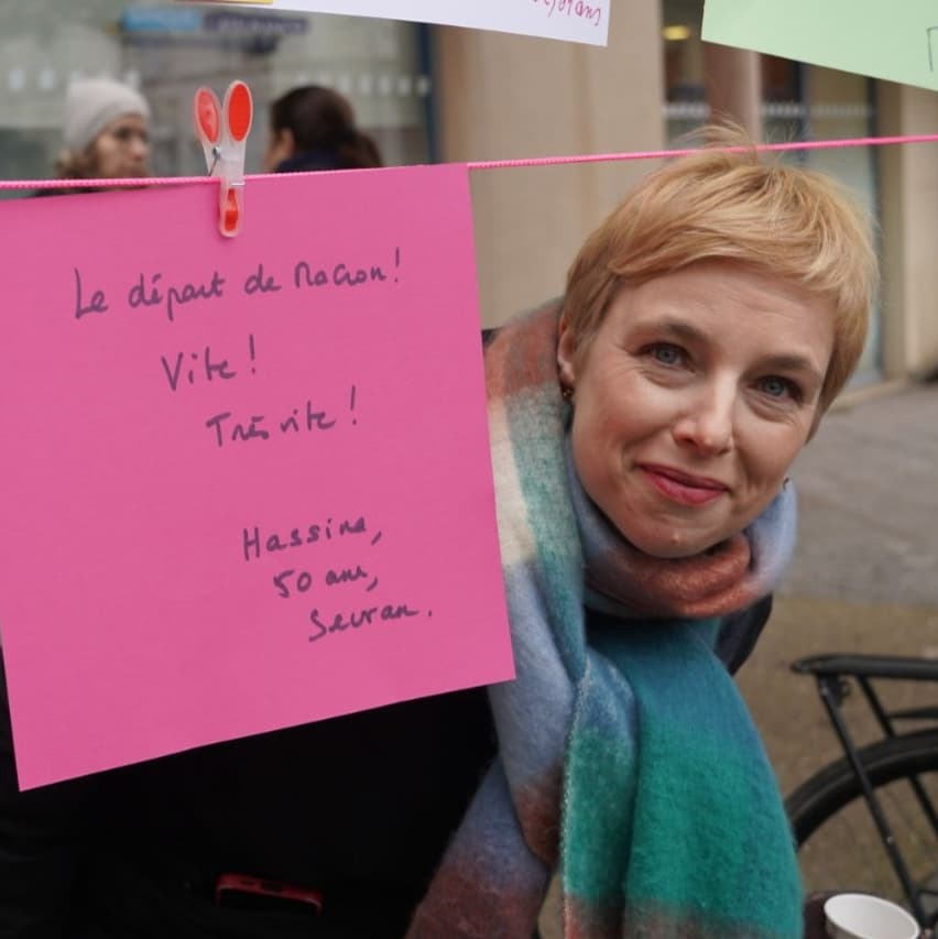 En 2025, la tournée des besoins continue ! Dans le froid de l’hiver, le choix de la couleur des pancartes se porte sur le vert et le jaune. L’espoir et le soleil sont attendus… Avec un besoin plusieurs fois exprimé ce matin : changer de président, en finir avec Macron !