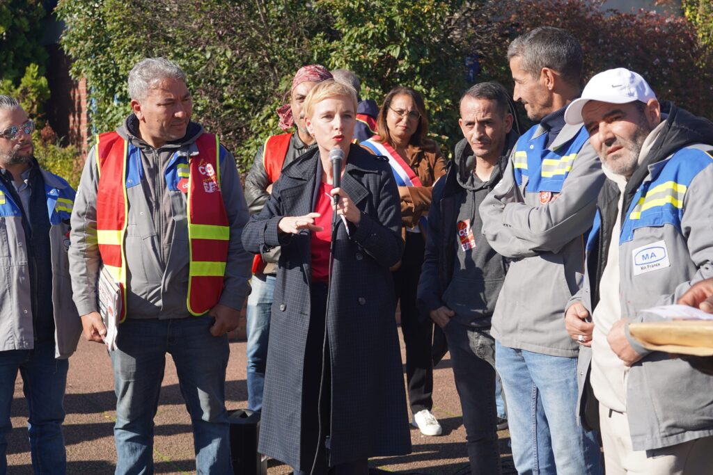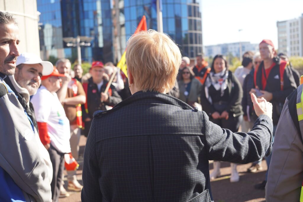 Devant le tribunal de Bobigny, en soutien aux travailleurs de MA France. Après des mois de lutte contre la sous-traitance et la déresponsabilisation du géant Stellantis, ils sont désormais assignés au tribunal. Intolérable.